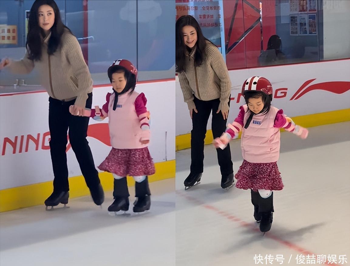 朱珠和老公酷炫出街!岁女儿拉去滑冰场,一个无奈一个害怕太搞笑了