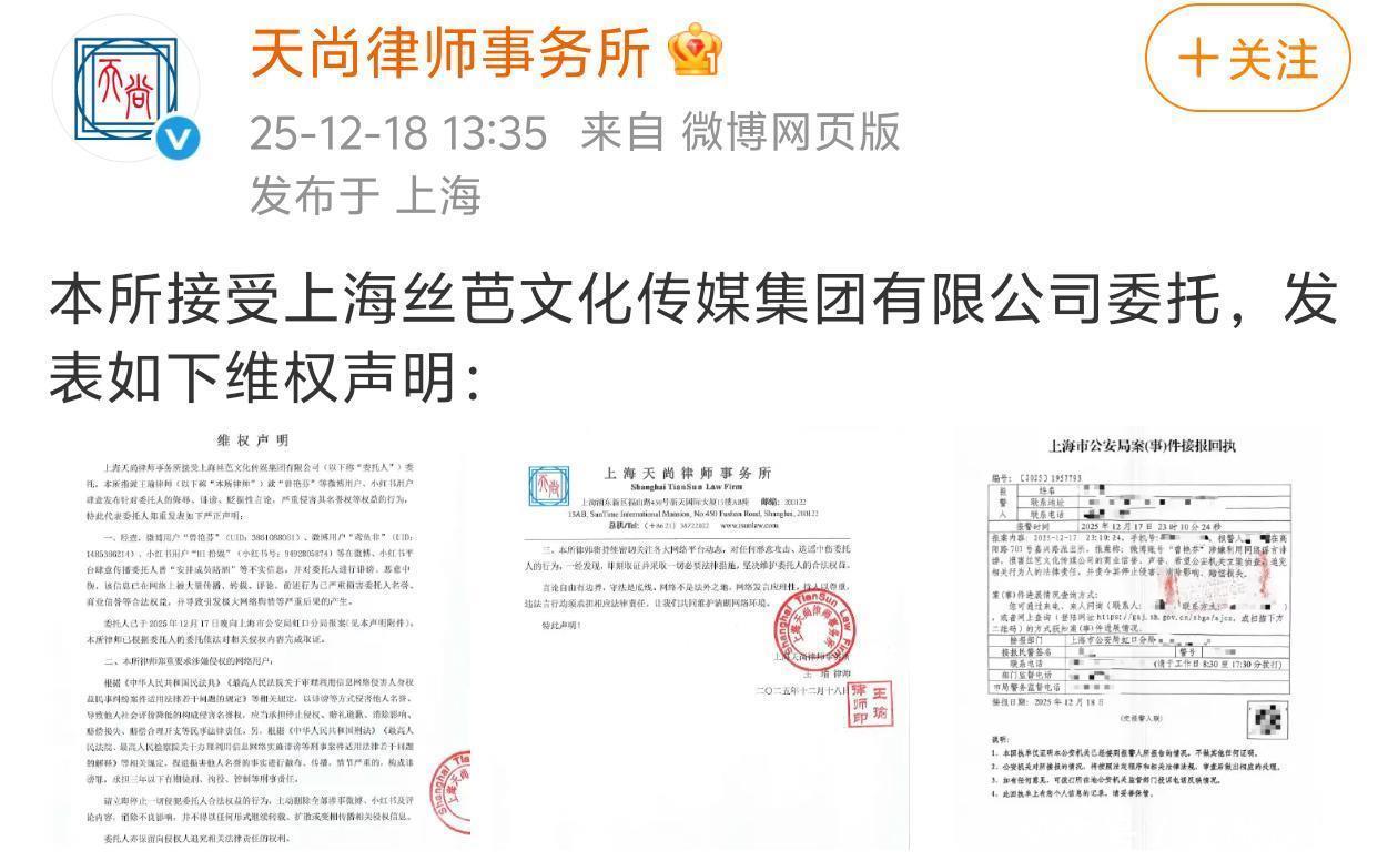 昨天关于前成员曾艳芬所说的安排艺人陪酒的事情,公司也选择了报警,并委托代理律师发了报警回执单。